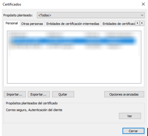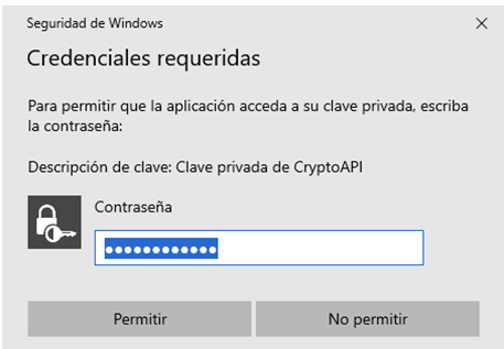 Si el certificado está protegido con contraseña, aparecerá la siguiente pantalla para introducirla.
