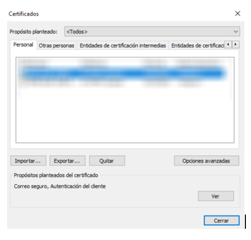 En Internet Explorer vaya a: Herramientas -> Opciones de internet -> Pestaña Contenido -> Certificados.