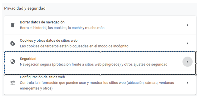 Busque configuración y baje hasta Privacidad y seguridad y pinche en Seguridad.