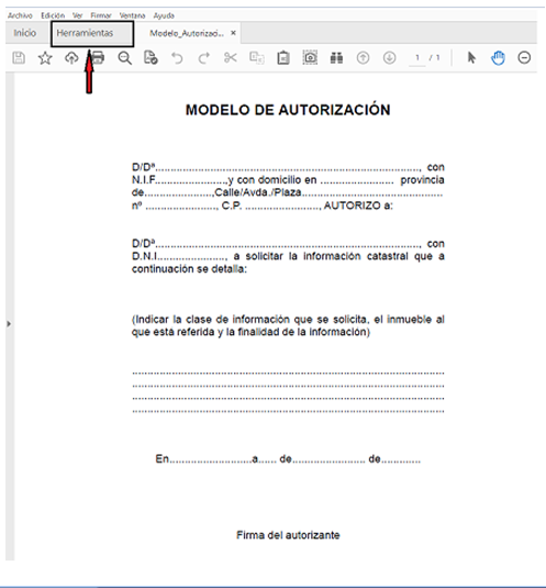 Comprobados los pasos anteriores pasamos a firmar el documento.